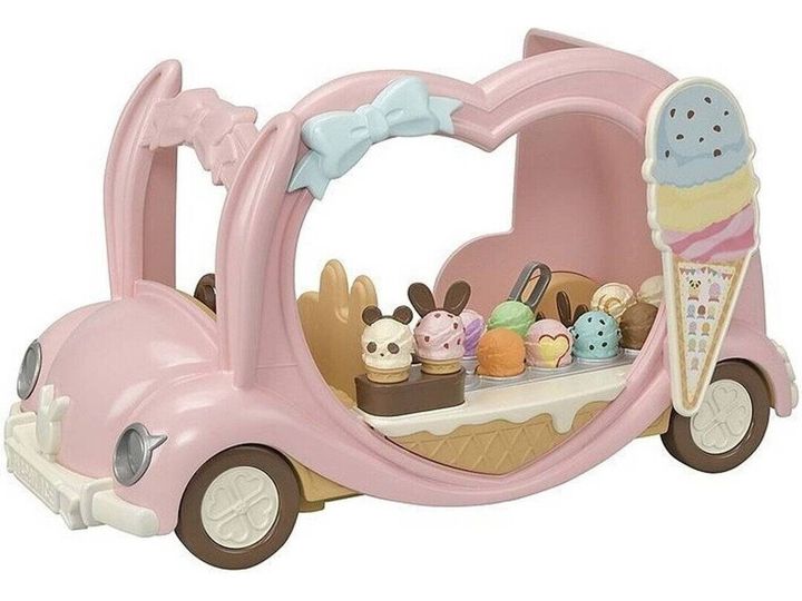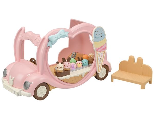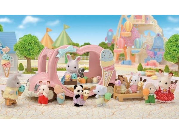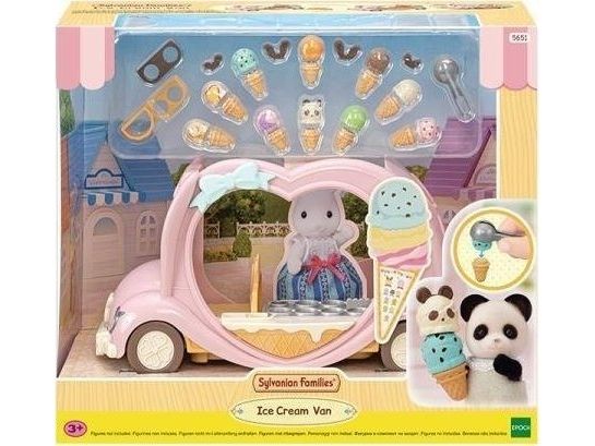 Hva hadde en fritidspark vært uten deilig iskrem? Det selges mye is i isbilen på Sylvanian Park. Det gleder babyene seg virkelig til. Vaffelisen kan bestilles i forskjellige smaksretninger og pyntes med søte sjokoladeører. Sittebenken i bilen kan også plasseres utenfor kjøretøyet som sittemulighet til de små kundene. Isbilen kan også bygges om til et vanlig kjøretøy. Hvis man snur på førersetet og salgsdisken, kan den brukes som sittebenk. Opptil 4 figurer kan ta plass i isbilen. Sylvanian Families isbil-lekesettet inneholder den ca 23 cm lange isbilen, en sittebenk, en iskremskje og mange isvafler, iskuler og sjokoladepynt. Egnet for barn f.o.m. tre år.
