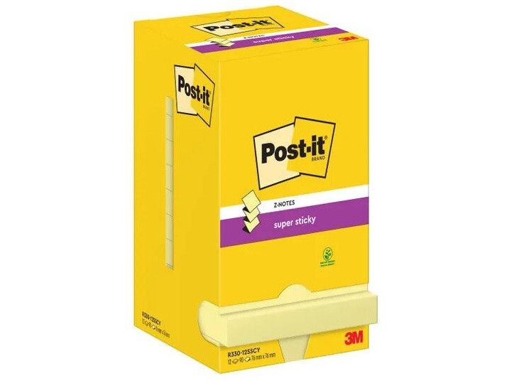 Post-it Super Sticky Z-Notes kanelgul 76 mm x 76 mm, pakke med 12 stk