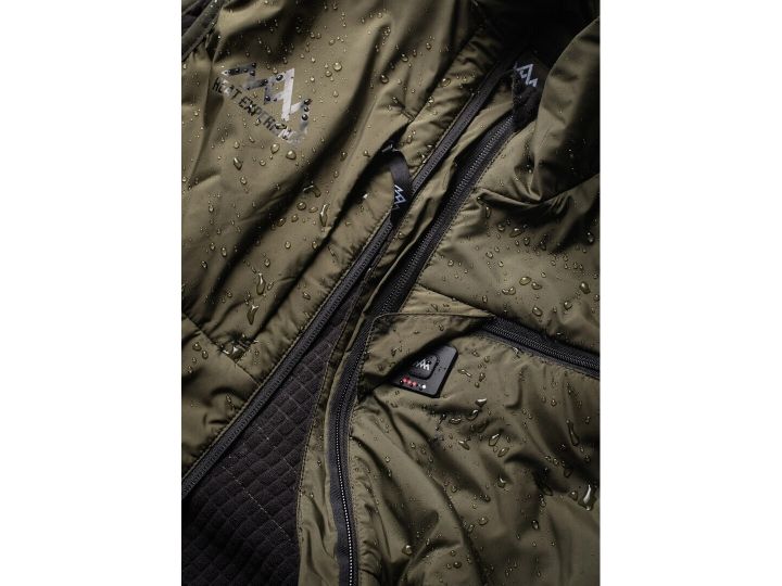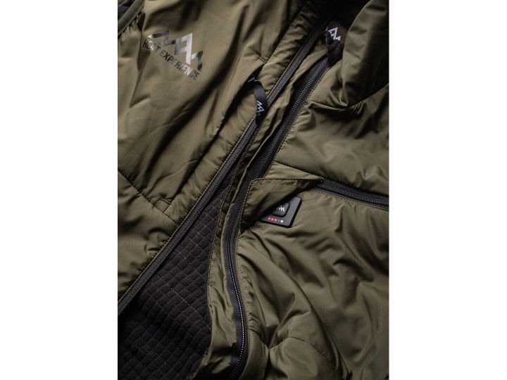 HeatX™ Heated Hunt Vest er utviklet for å møte jegerens behov. HeatX™ varmesystemet og den medfølgende 10000mAh powerbanken holder deg varm i opptil 8 timer. Waffle fleece-fôr og Thinsulate-isolasjon holder deg varm uten å ofre pusteevnen. Den ekstra lengden gir god beskyttelse mot vær og vind, og elastiske paneler på sidene sørger for god passform og komfort i alle posisjoner. Vesten er utstyrt med dype brystlommer for jaktradio og GPS. Nivåkontrollen er plassert foran på brystet ved glidelåsen, lett tilgjengelig under jakken, og samtidig dekket av en magnetisk klaff for å unngå lysforstyrrelser. Du kan også endre varmenivåene via den nye appen fra Heat Experience.