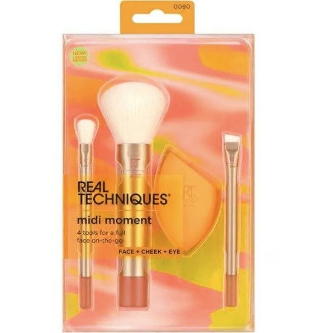 RT 359 øjenskyggebørste 1 stk. + RT 407 pudder- og blushbørste 1 stk. + RT 356 bi-graveret eyelinerbørste 1 stk. + makeupsvamp 1 stk.