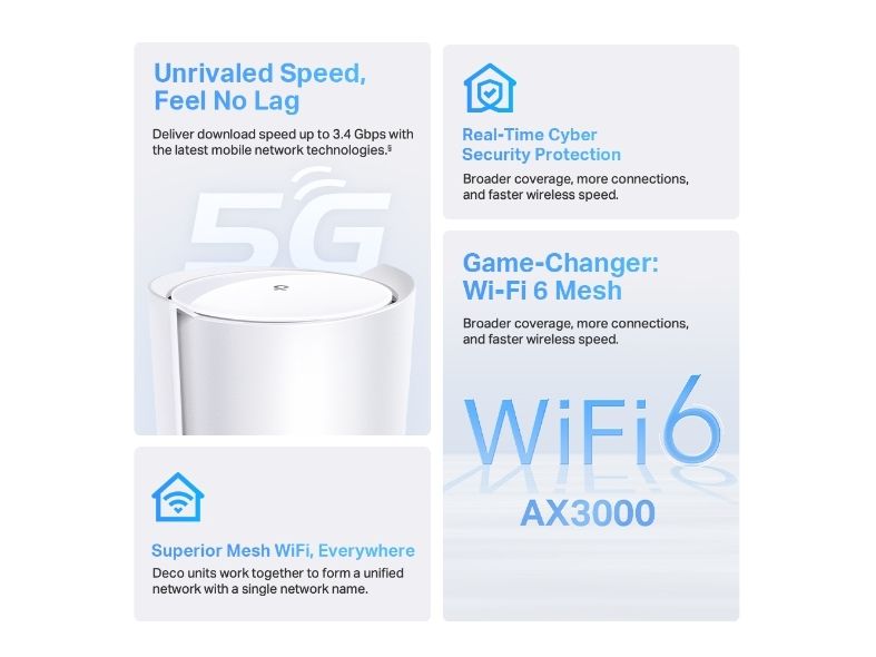 TP-Link Deco X50-5G, Hvit, Innvendig lys, Mesh system, 230 m², Dobbelbånd (2.4 GHz / 5 GHz), Wi-Fi 6 (802.11ax)
