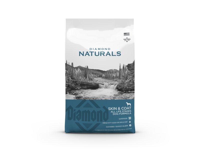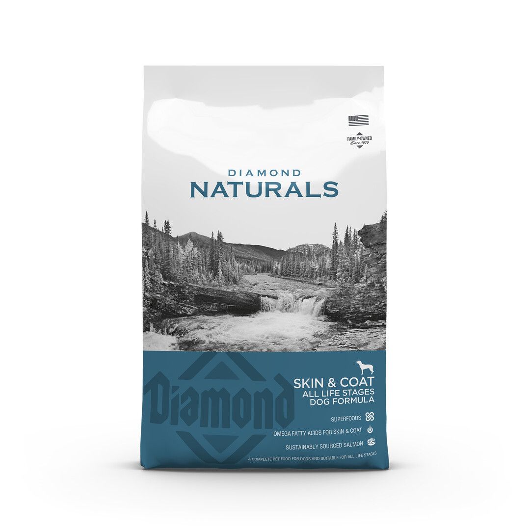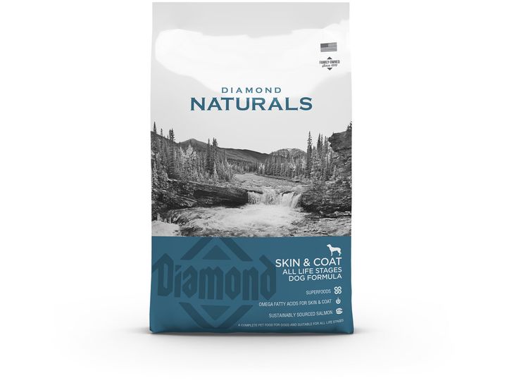 Diamond Naturals Skin & Coat er et foder  til hunde i alle livsstadier. Et komplet foder  med laks . Laks er hovedingrediensen , laks medvirker til at  opretholde en sund hud og pels i alle livets faser. Tilsat  superfoods.