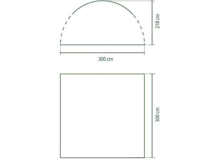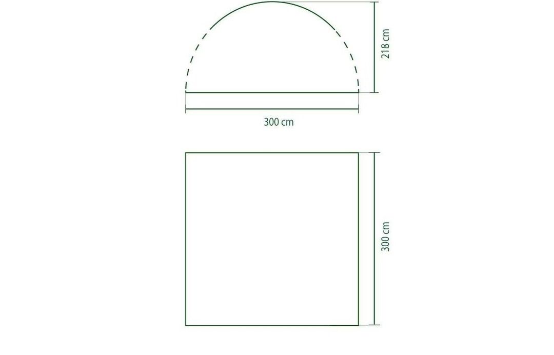 Mål: 3 x 3 m Areal: 9 m² Høyde: 210 cm i midten / 179 cm på sidene Materiale: Polyesterstoff Stamme: Stålramme