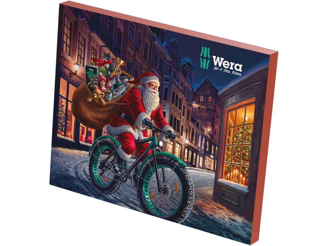 Når du kjøper denne Wera adventskalenderen, får du en Wera-varepakke som består av: 1 Wera handlenett, 1 Wera kulepenn og 1 pakke med 10 plaster – «Tool Rebels Don't Cry» – Begrenset antall!