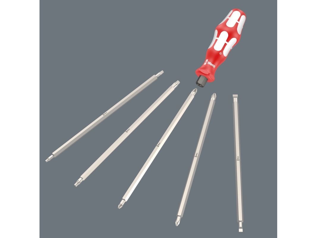 Også inkludert: 5 utskiftbare klinger med dobbeltspiss samt et passende håndtak - følgelig kan du skru 10 forskjellige profiler.