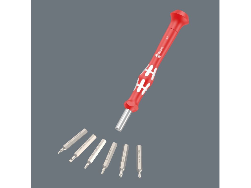 Og noe som er spesielt nyttig for elektroteknikere, finmekanikere og modellbyggere: 1 Micro bitsholder og 6 Micro-bits, som gjør det lekende lett å arbeide med svært små skruer.
