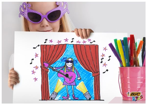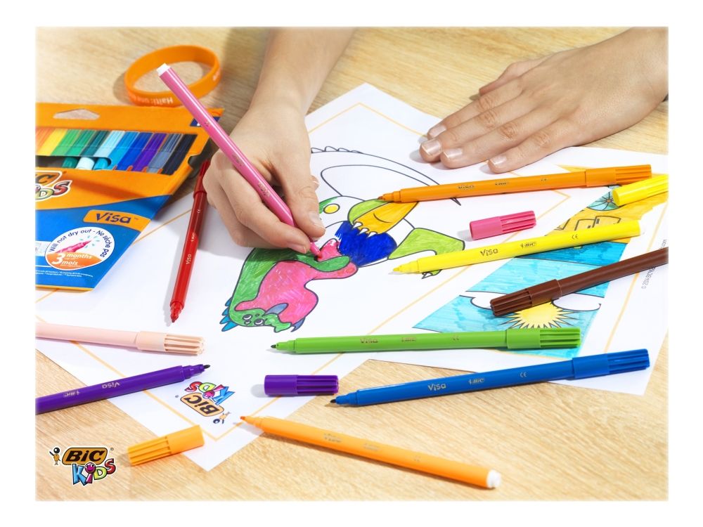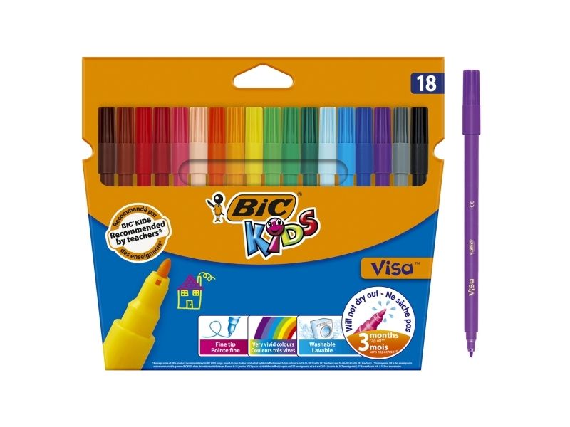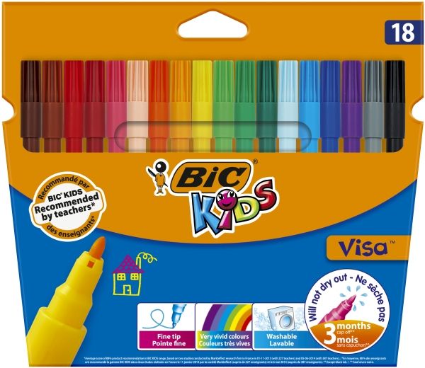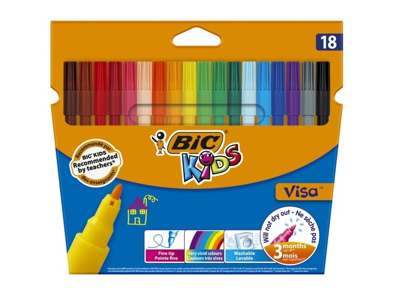 BIC KiDS Visa - Fibertuppenn - ikke-permanent - assorterte farger - vannbasert blekk - 0.9 mm - fin (en pakke 18)