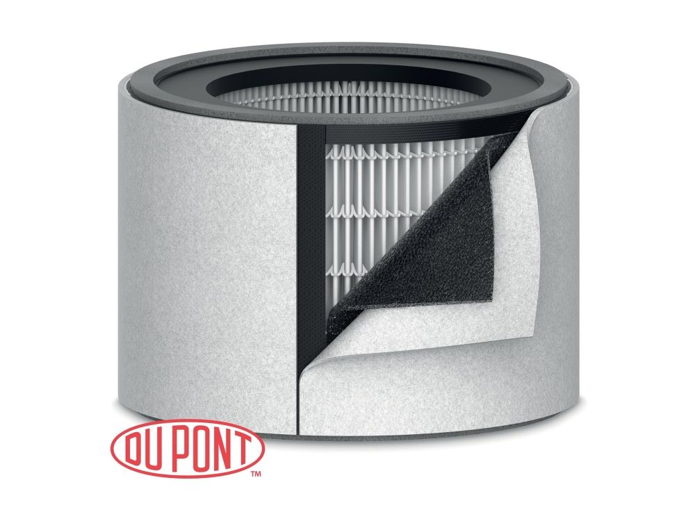 Alt-i-ett-filtreringssystemet kombinerer et H13 HEPA-filter med aktivt kull og et separat vaskbart forfilter. Dette filteret er utviklet for å fange opp ultrafine luftbårne partikler, inkludert bakterier, virus, støv, allergener, flass fra kjæledyr, flyktige organiske forbindelser (VOC) og luktende gasser.
