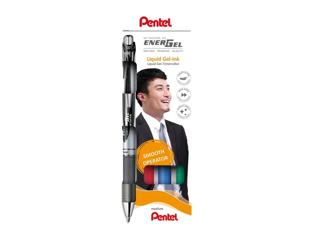 Pentel EnerGel - Rulleballpenn - svart, rød, blå, grønn - gelblekk - 0.7 mm - medium - retraktil (en pakke 4)