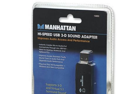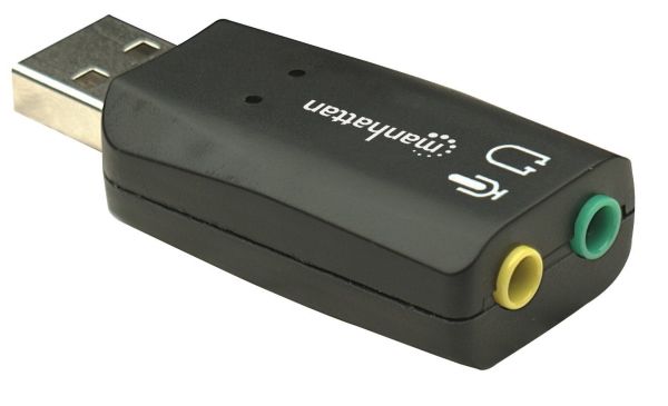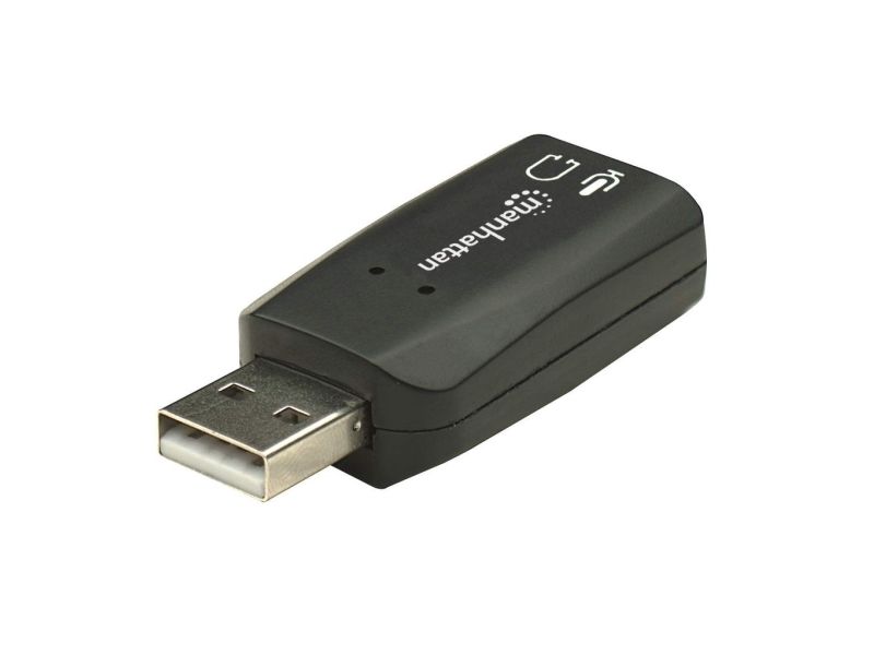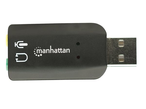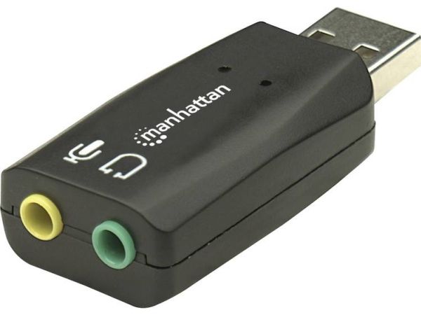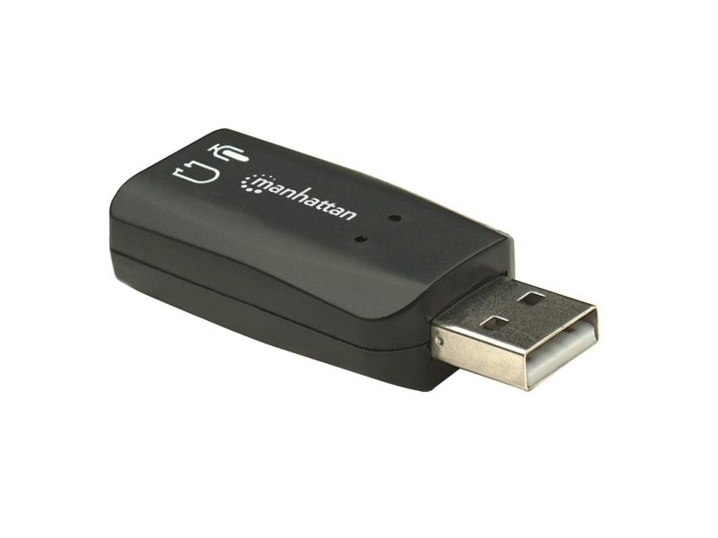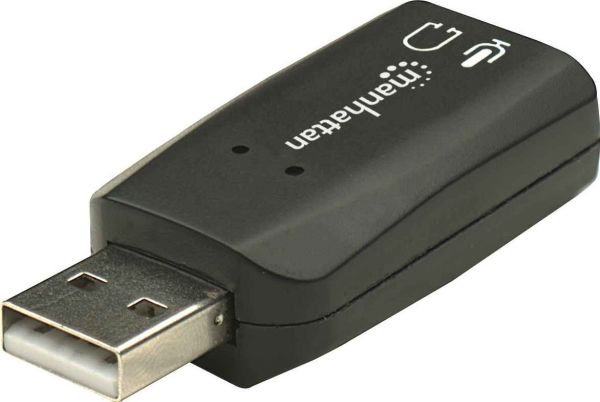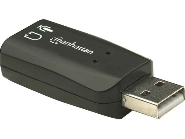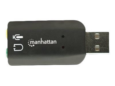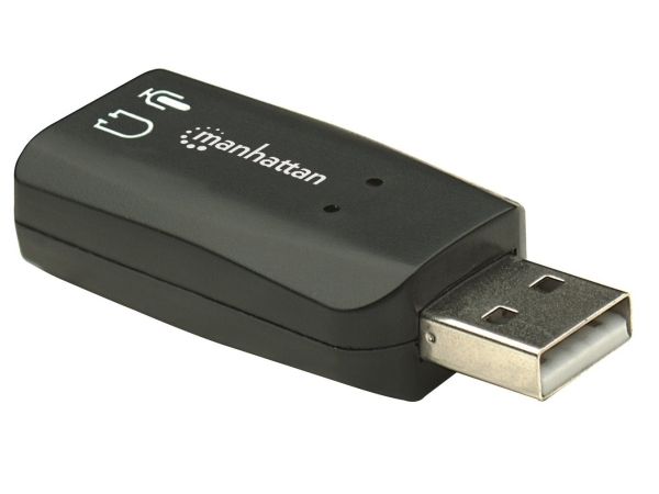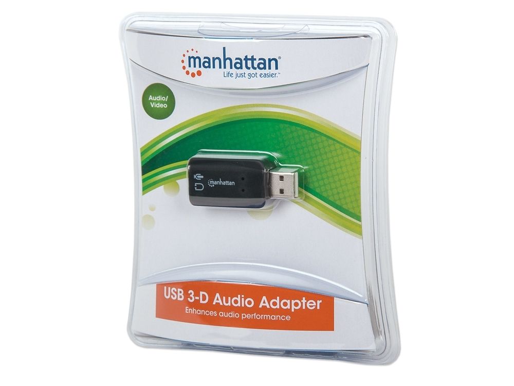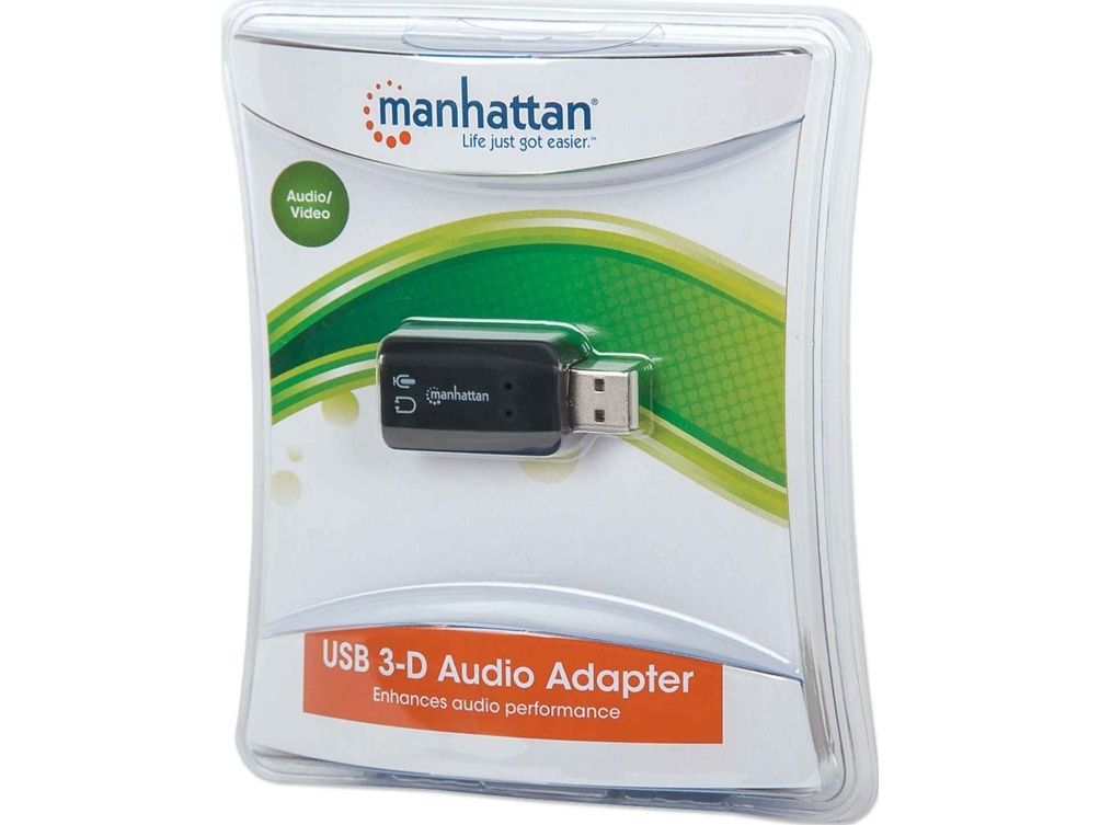 Plug-in, play and enjoy better audio performance with USB convenience. Ideal for desktop, notebook and netbook computers, and the MANHATTAN Hi-Speed USB 3D sound adapter instantly creates microphone-in and audio-out ports through any USB port. Easily connect headsets, microphones and speakers equipped with 3.5 mm cables that are too short to comfortably reach ports with awkward or inconvenient locations. With Plug and Play and hot-swap capabilities, it easily replaces inoperative sound cards, bypasses damaged audio ports and improves access without special drivers or software. A built-in Class-B power amplifier utilizes USB bus power, eliminating the need for external energy supplies or additional cables. Support for 3-dimensional audio and virtual 5.1 surround sound and built-in sound effects with a 10-band equalizer deliver rich, high-quality experiences with familiar USB convenience and functionality.