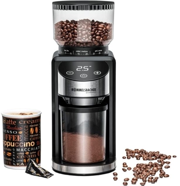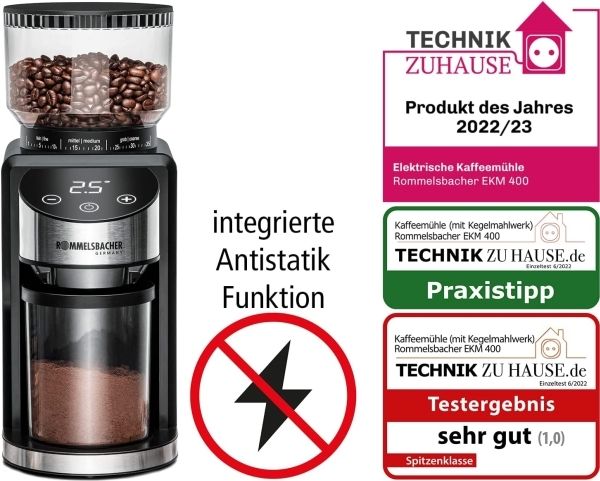 Rommelsbacher EKM 400, Kantkvern, 220 g, Koniske grader, Rustfritt stål, Sort, Rustfritt stål, Plast, Rustfritt stål
