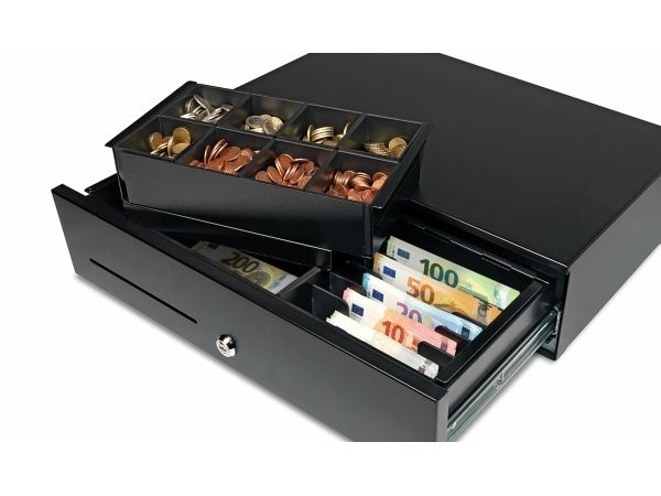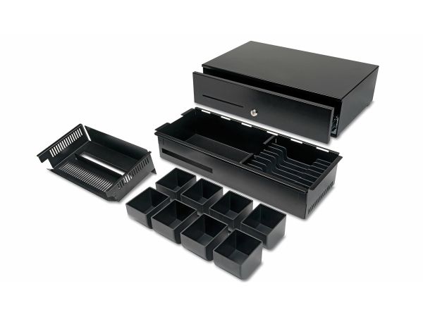 This heavy-duty cash drawer is ideal for use in high volume retail environments, bars, restaurants and gas stations. Featuring a metal casing, an extra solid telescopic sliding mechanism with ball bearings and a strong pvc drawer tray, the Safescan HD-5030 has been tested to last for at least 2 million open/close cycles.