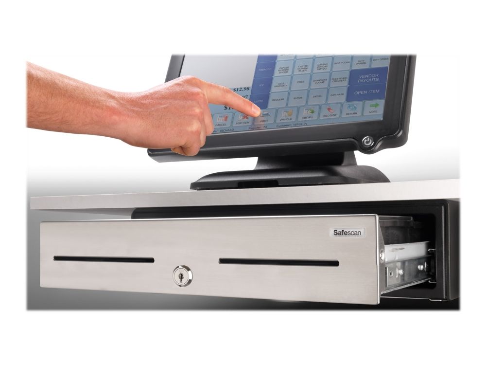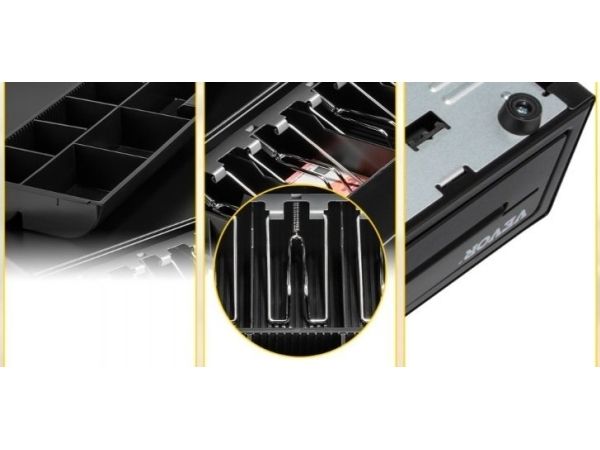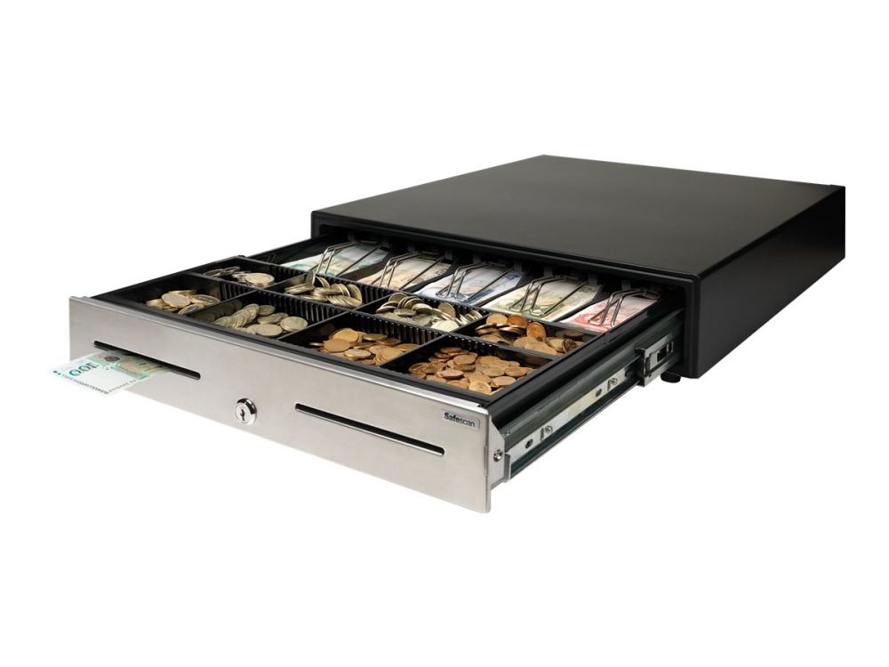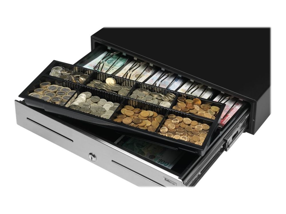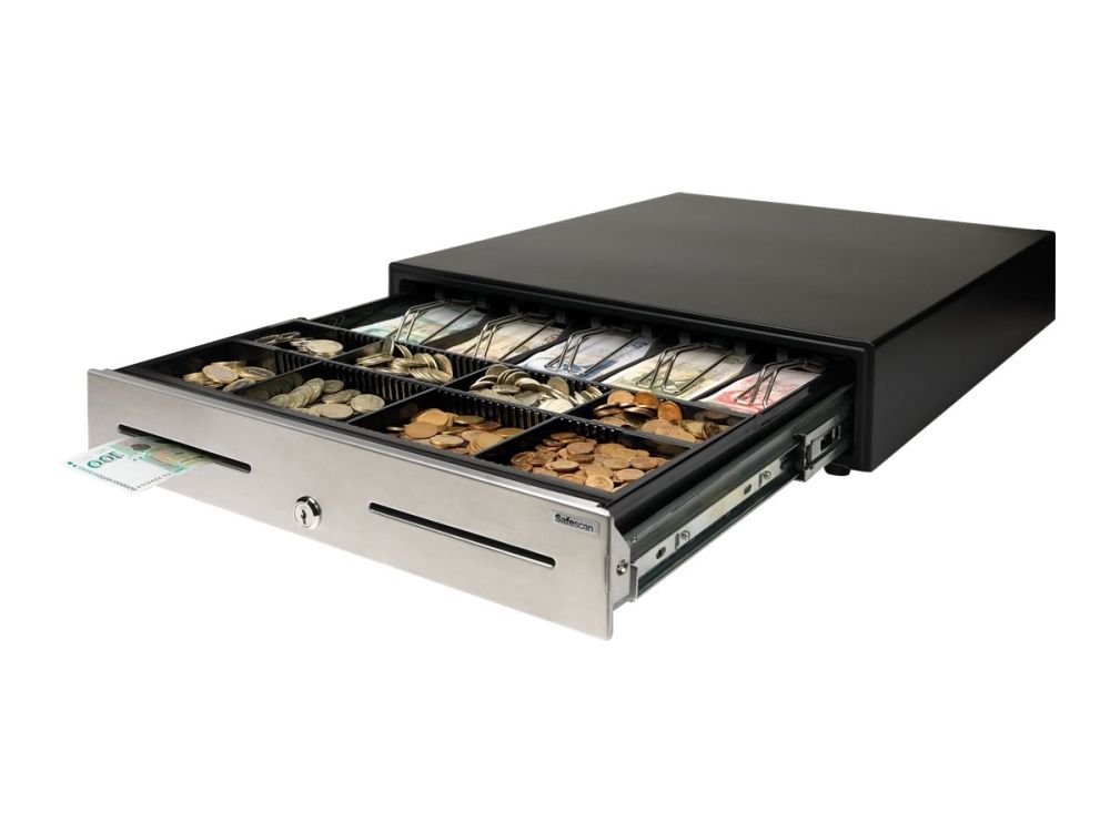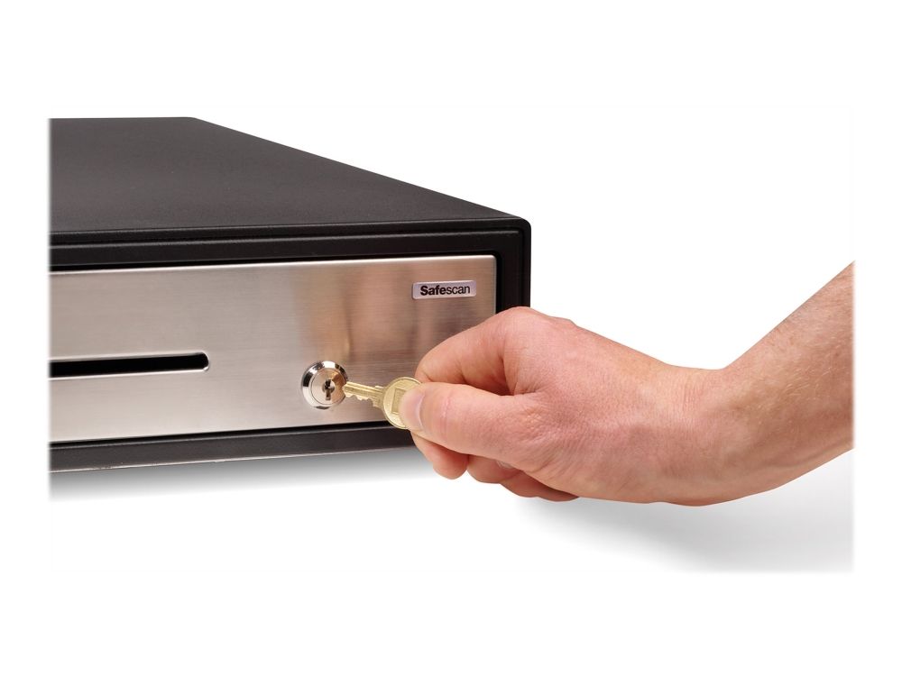 This heavy-duty cash drawer is ideal for use in high volume environments, such as retail stores, bars, restaurants and gas stations. Due to the strong telescopic slides and solid metal build, this cash drawer is tested for at least 2 million openings. Open the cash drawer by simply turning the key, or connect with the RJ12 printer cable to a receipt printer or cash register for electric opening. It is ideal lay-out for GBP, with 5 adjustable banknote compartments and a removable and adjustable tray for 8 different coins. It includes seperation slot for storing large denominations and value papers out of sight.
