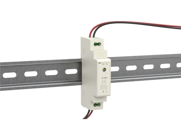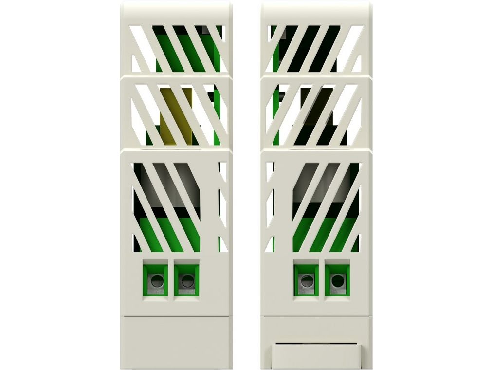 Med en bredde på 18 mm er den særlig kompakt og kan hurtigt og nemt monteres på en DIN-skinne med top-hat-profil ved hjælp af et kliksystem, f.eks. i et koblingsskab.
