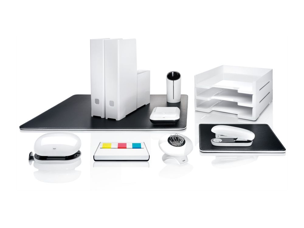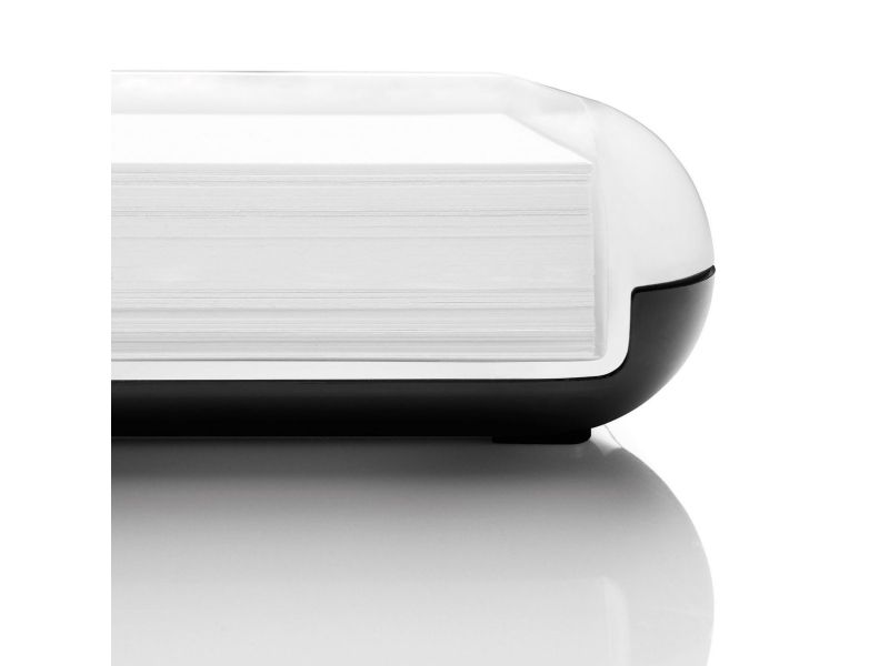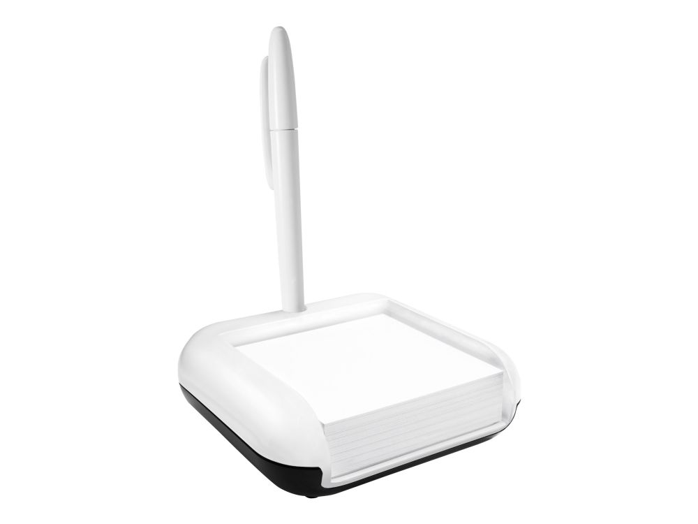 White, glossy eyestyle sticky notes box in a simple, understated design. Ideal for storing sticky notes, format 76 x 76 mm. Thanks to the indentation at the front, the notes are easy to remove, down to the last sheet. Comes with an integrated penholder. Made of a combination of white acrylic and black ABS plastic. Box contents include a white sticky note pad (200 sheets, 76 x 76 cm).