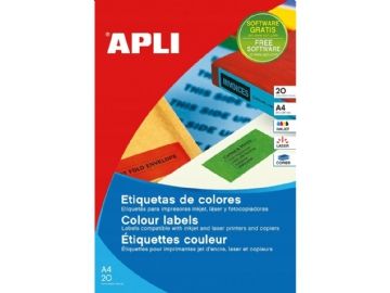 Apli Fargede etiketter APLI, 70x37mm, avrundet, grønn, 20 ark.