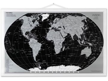 Verdenskort sort/sølv 97 x 67 cm (rullet)
