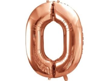 Party Deco Folieballong Nummer "0", 86cm, rosa gull, universal