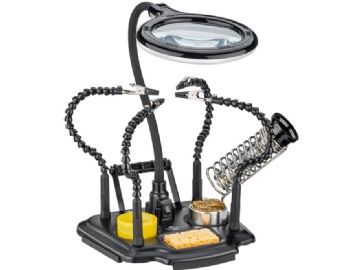 Tredje hånd med forstørrelsesglas og loddekolbestativ