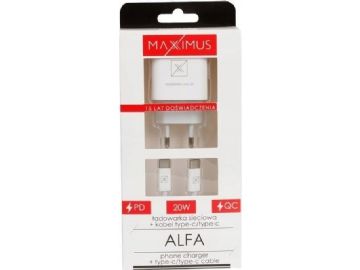 Maxximus ŁAD lader. NETTVERK MX ALFA 20W PD+QC, USB-A+C HVIT