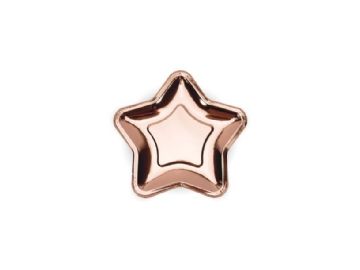PartyDeco Star tallerkener rosa gull 18cm 6stk