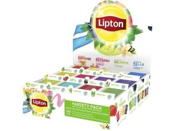 Te Lipton med 180 tebreve, i 12 varianter, i displayæske