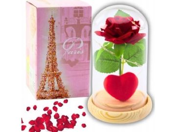 Eternal Rose in Dome med LED-belysning Rød med hjerte 14x8cm